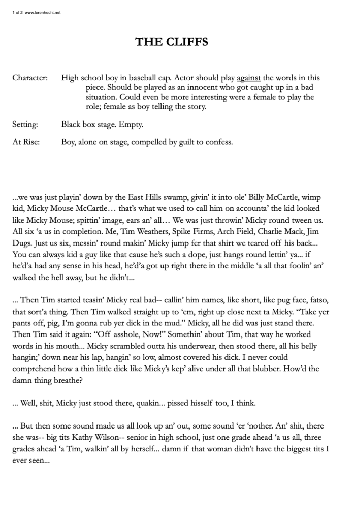 The Cliffs (a short story plucked from 1 of 69 books written in THE PORNO FACTORY in 1985) Page 1