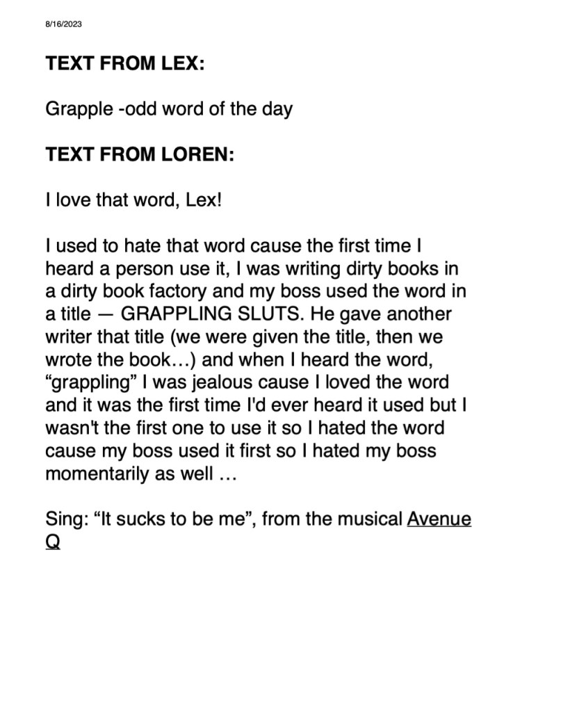 GRAPPLING SLUTS (got a text from my friend today 8/16/2023) microobservations Uncategorized August 16, 2023 1 Minute Share this: Click to share on X (Opens in new window) X Click to share on Facebook (Opens in new window) Facebook Like Loading... Related Published by microobservations View all posts by microobservations Published August 16, 2023