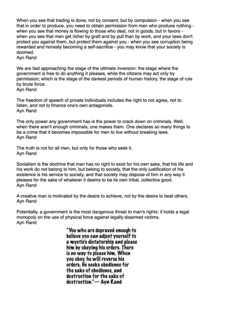 “If the truth shall kill them, let them die,” and more quotes by Ayn Rand microobservations Uncategorized August 27, 2023August 27, 2023 1 Minute Share this: Click to share on X (Opens in new window) X Click to share on Facebook (Opens in new window) Facebook Like Loading... Related Published by microobservations View all posts by microobservations Published August 27, 2023August 27, 2023