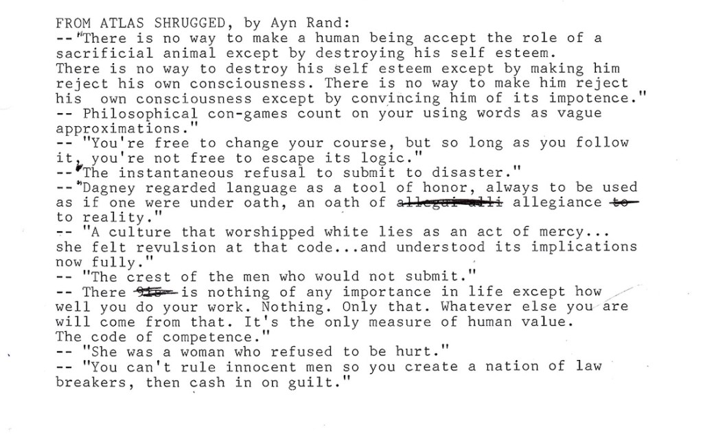 Lines Worth Memorizing from the book, Atlas Shrugged microobservations Uncategorized January 20, 2024 1 Minute Share this: Click to share on X (Opens in new window) X Click to share on Facebook (Opens in new window) Facebook Like Loading... Related Published by microobservations View all posts by microobservations Published January 20, 2024