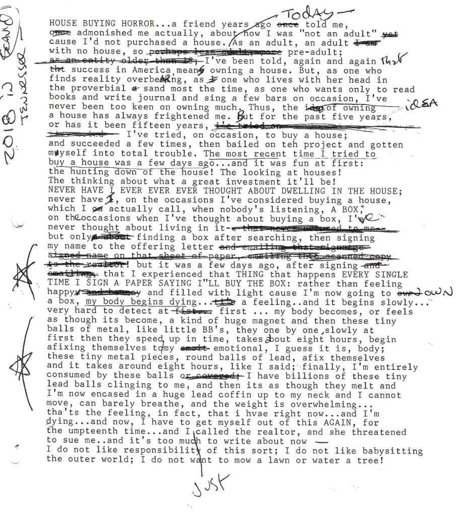 HOUSE BUYING HORROR (from my book in progress— 5 PAGES PER DAY: The Cerebral Enema Journals)