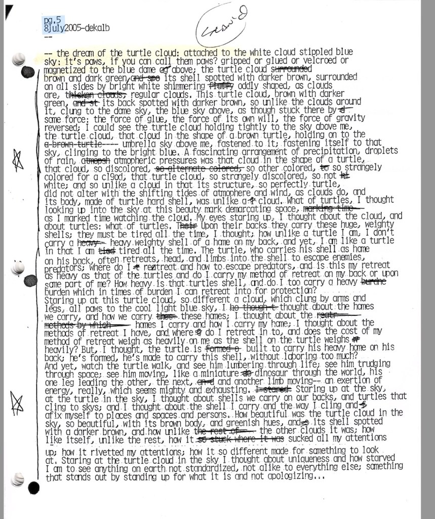 DREAM of the Turtle Cloud in 2005 (from my book in progress… 5 PAGES PER DAY: The Cerebral Enema Journals)