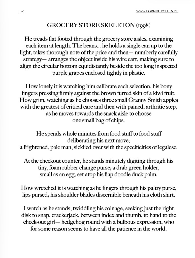 GROCERY STORE SKELETON (written 1998) microobservations Uncategorized January 2, 2026 1 Minute Screenshot Screenshot Share this: Click to share on X (Opens in new window) X Click to share on Facebook (Opens in new window) Facebook Like Loading... Related Published by microobservations View all posts by microobservations Published January 2, 2026