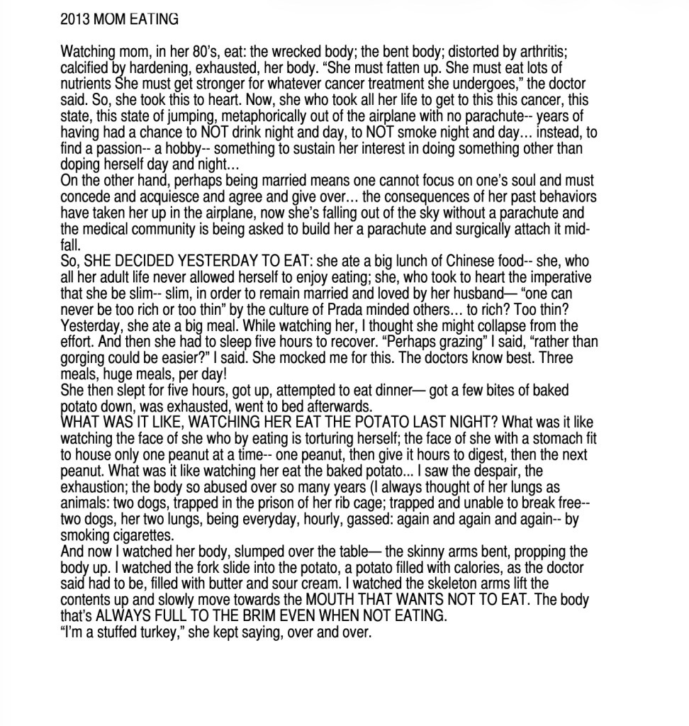 “Watching Mom Eat in 2013” (from my book in progress… 5 PAGES PER DAY: The Cerebral Enema Journals)