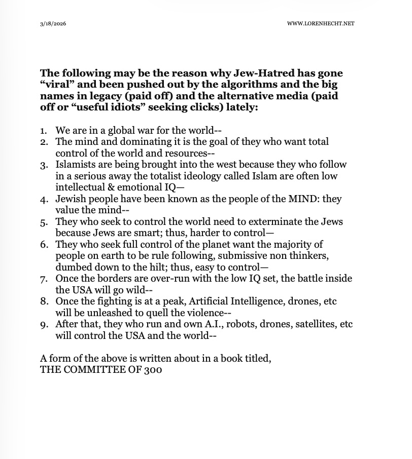 Jew Hatred is Gone Viral Today. Why? microobservations Uncategorized March 18, 2026March 18, 2026 1 Minute Screenshot Share this: Share on X (Opens in new window) X Share on Facebook (Opens in new window) Facebook Like Loading... Related Published by microobservations View all posts by microobservations Published March 18, 2026March 18, 2026