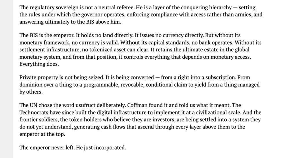 Q & “The Coming Storm” (of slavery for all…) microobservations Uncategorized April 16, 2026 1 Minute Screenshot Screenshot Screenshot Screenshot Screenshot Screenshot Screenshot Screenshot Screenshot Share this: Share on X (Opens in new window) X Share on Facebook (Opens in new window) Facebook Like Loading... Related Published by microobservations View all posts by microobservations Published April 16, 2026