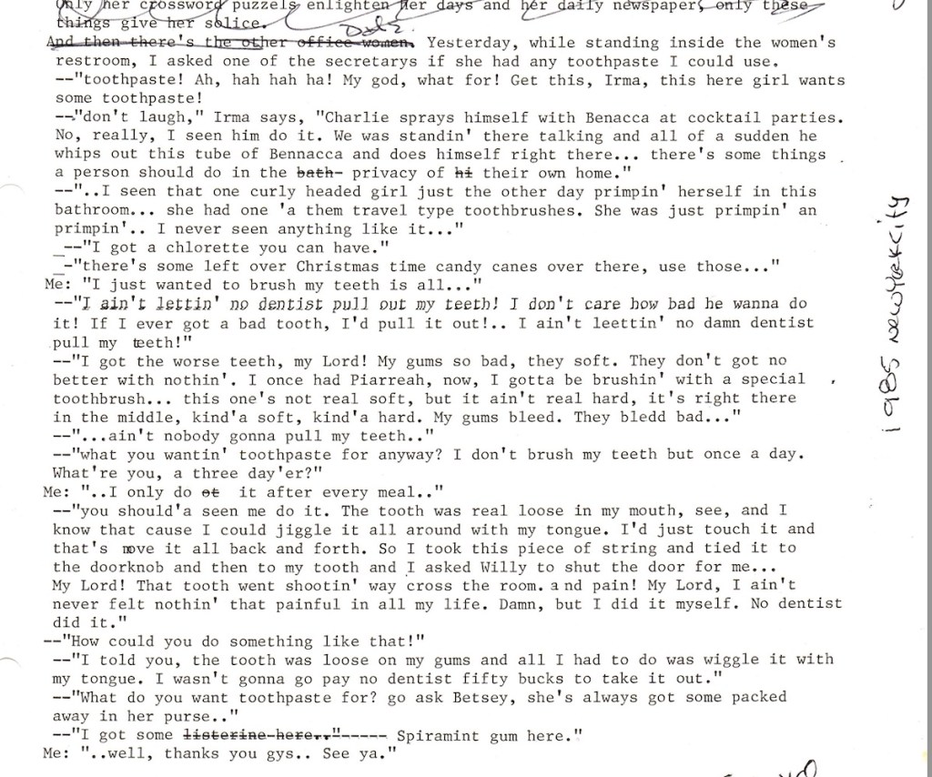 “1985– The Secretary’s Advice” (from my book in progress… 5 PAGES PER DAY: The Cerebral Enema Journals)