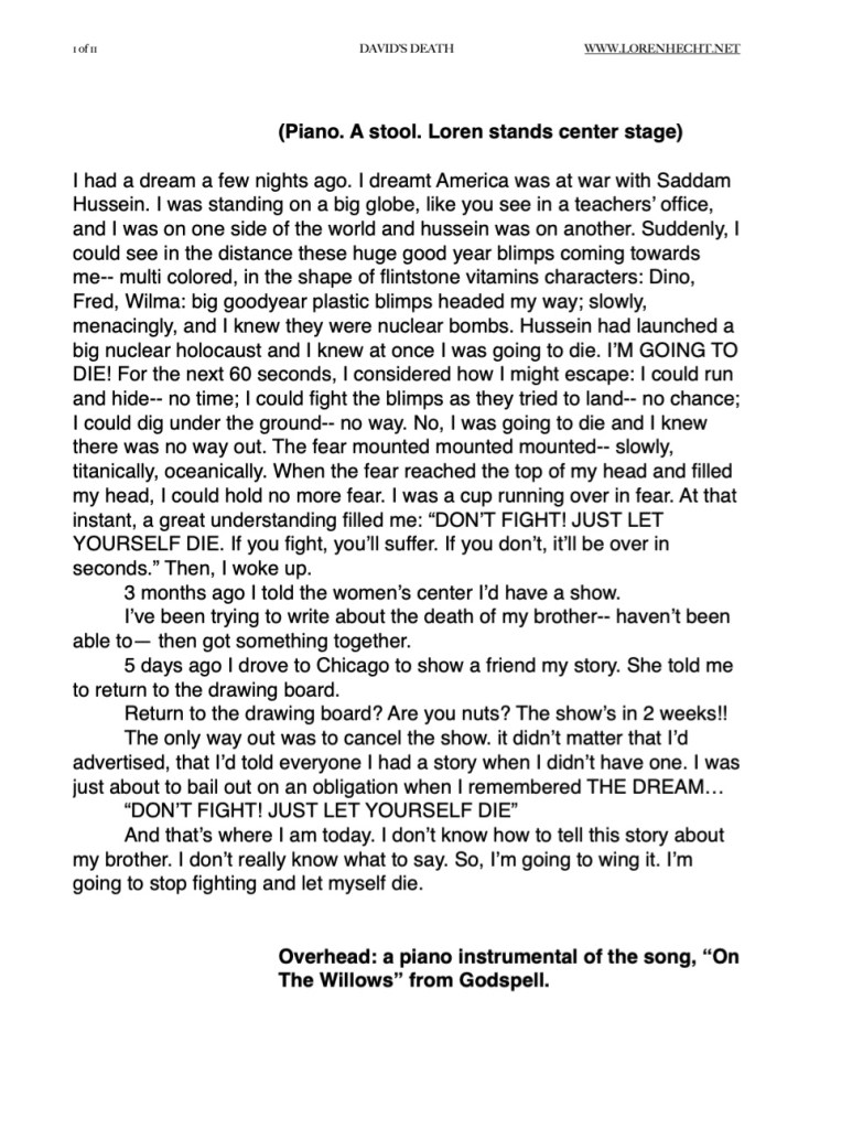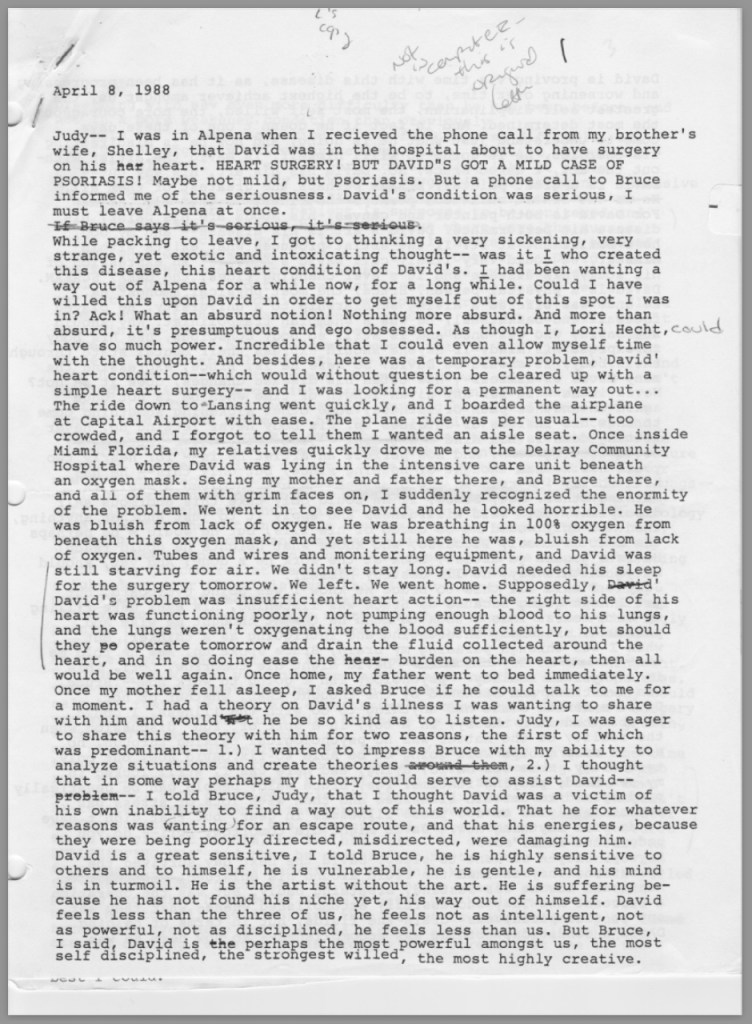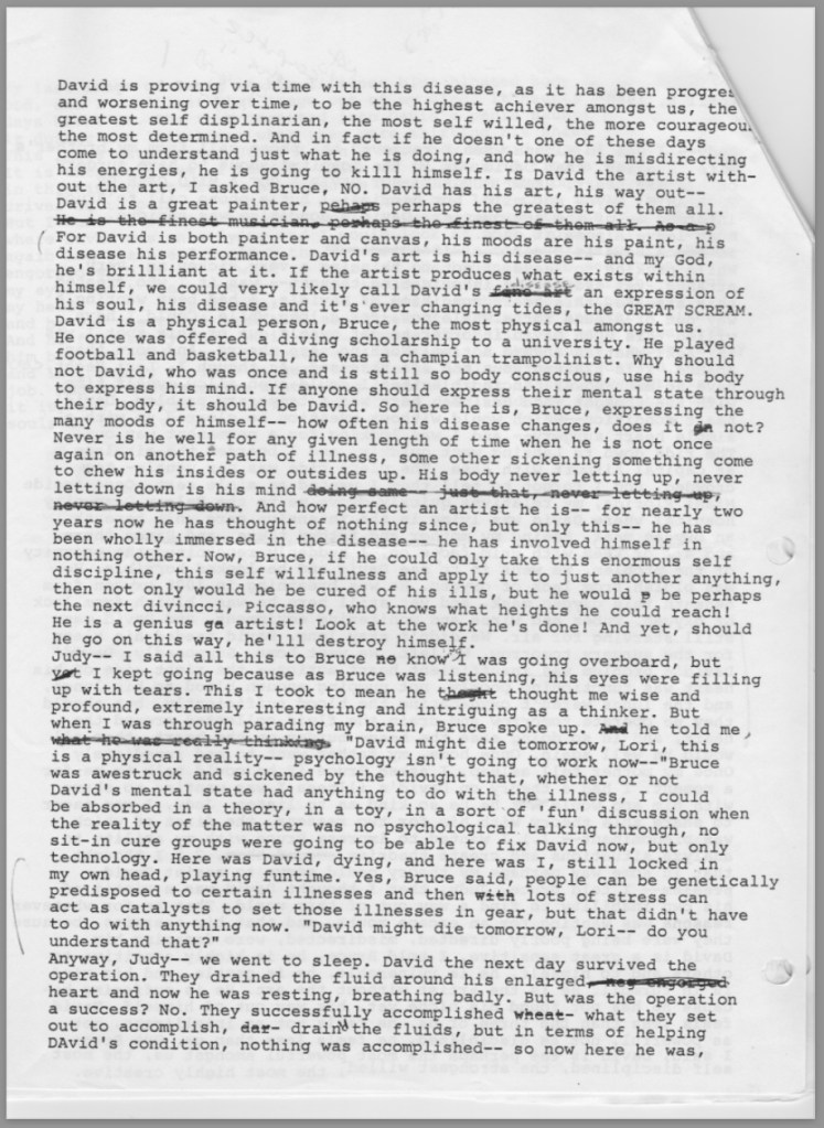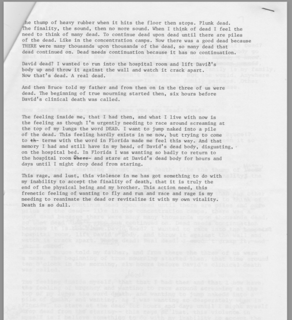 WATCHING DAVID DIE: a monologue & a letter… an attempt to find meaning in the event of my brother’s death… The Monologue (made 1996) and The Letter (made 1988–the year of his death)