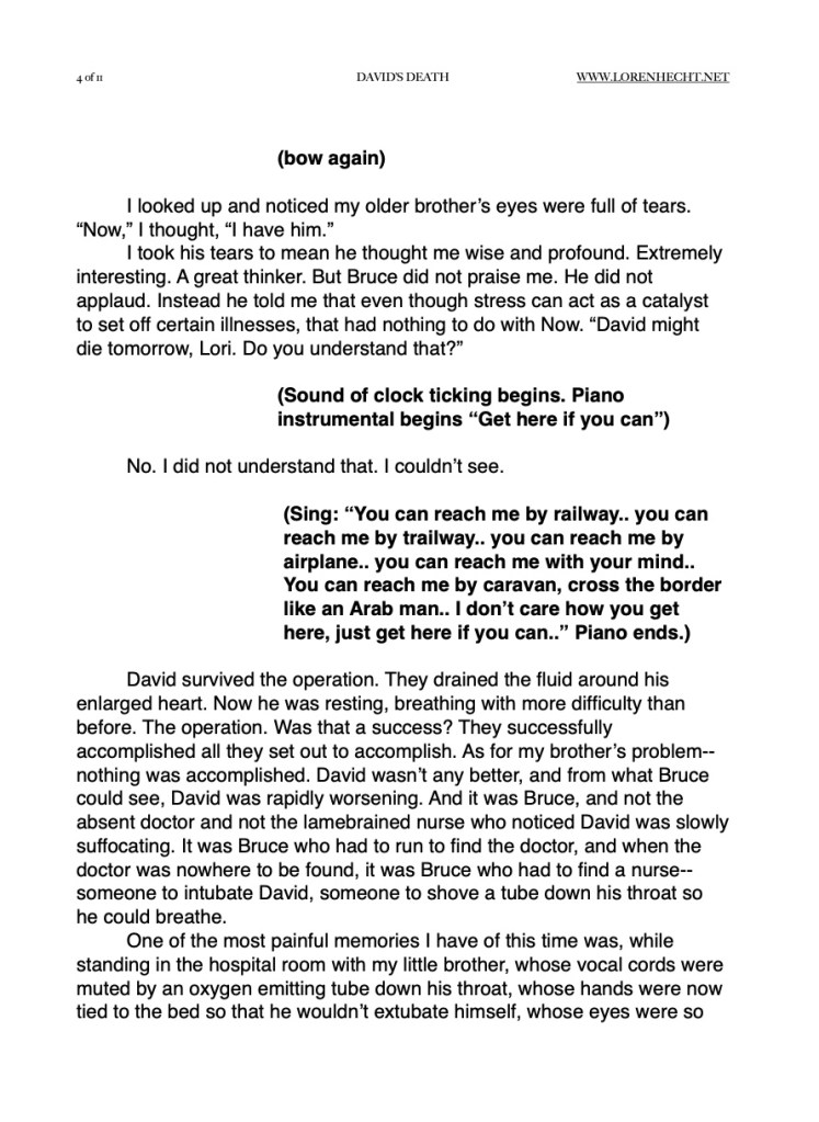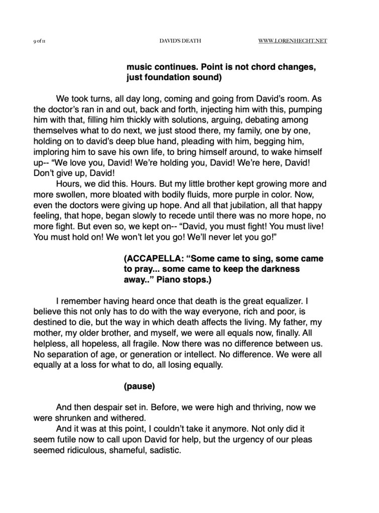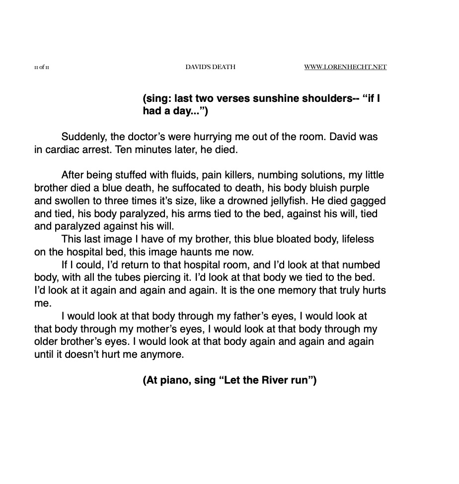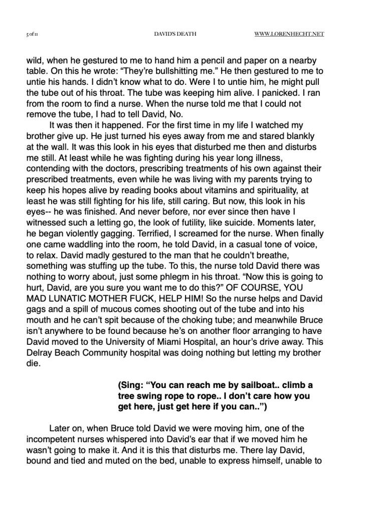 WATCHING DAVID DIE: a monologue & a letter… an attempt to find meaning in the event of my brother’s death… The Monologue (made 1996) and The Letter (made 1988–the year of his death)