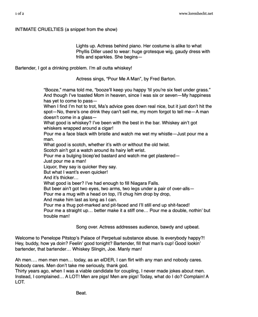 Intimate Cruelties 2001: fragment of a completed work (pg. 1 of 2)